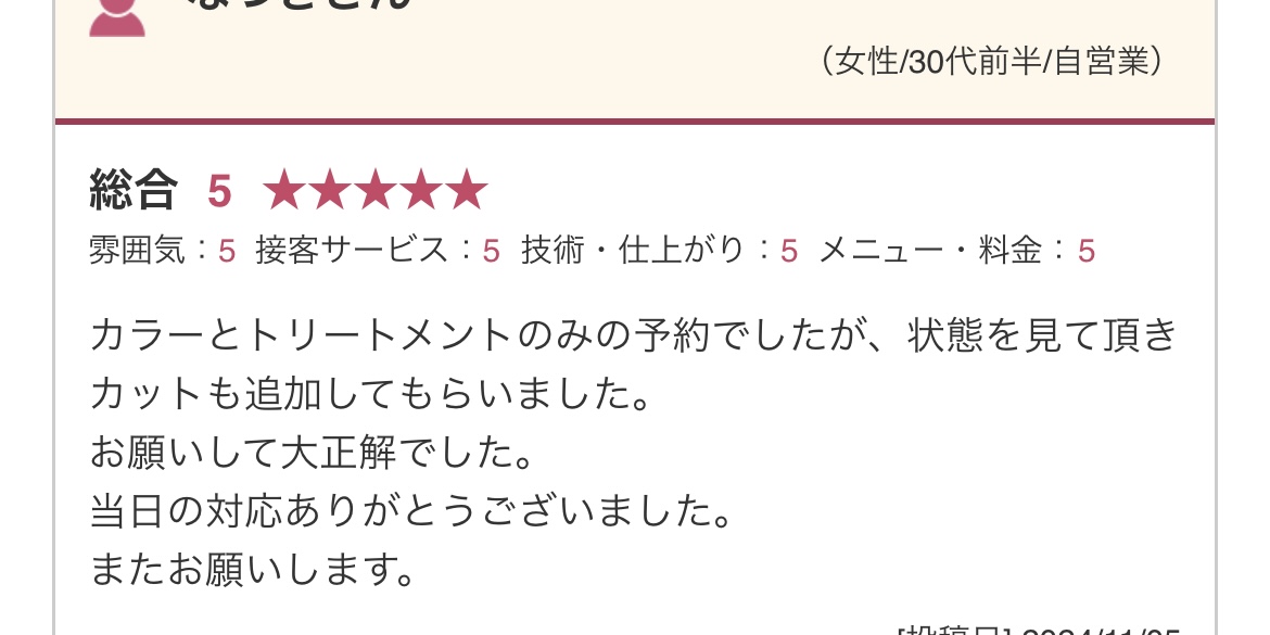 • 信頼できる美容師と長く付き合っていきたい方